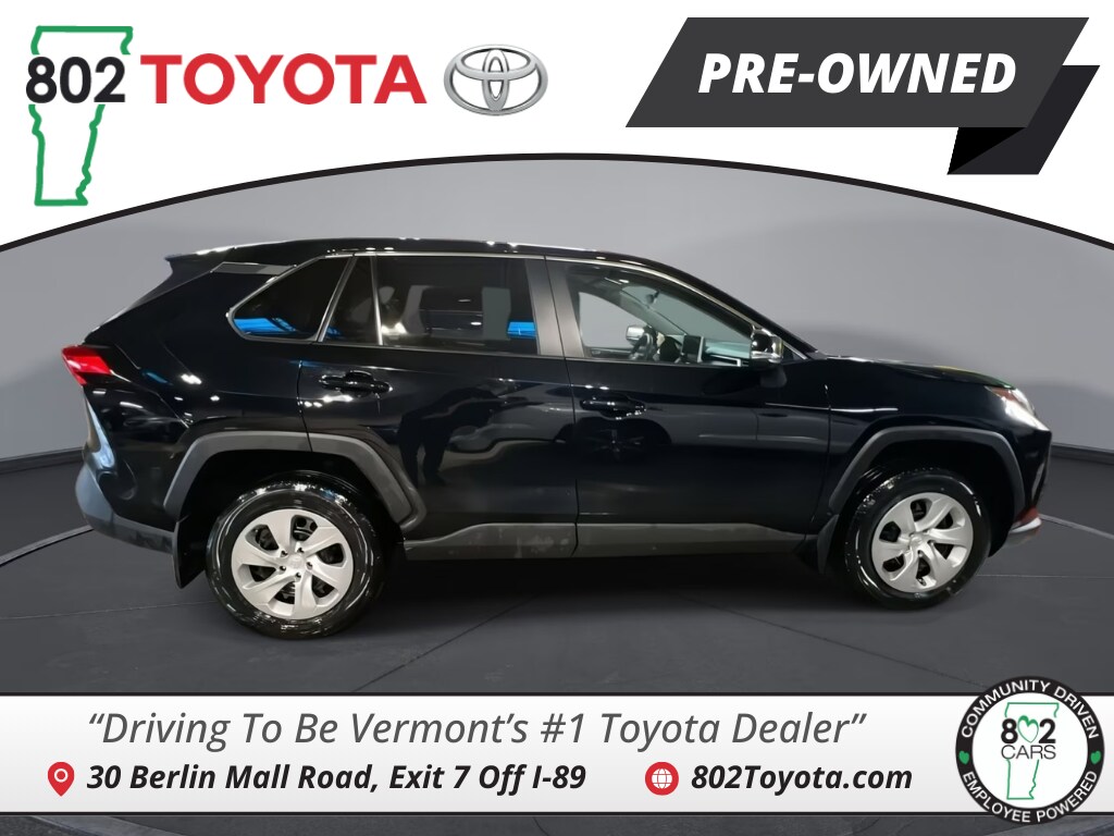 802 Toyota is proud to present you with another True Market Priced Pre-Owned Vehicle. Transparent Pricing Of $ 27602 !! This 2023 Toyota RAV4 LE Toyota Gold Certified is loaded with the following Factory Options: AWD, Black w/Fabric Seat Trim, and Blind Spot Monitor w/RCTA Toyota Gold Certified Certified, AWD, Black w/Fabric Seat Trim, Blind Spot Monitor w/RCTA, 17" Steel Wheels, 4-Wheel Disc Brakes, 6 Speakers, ABS brakes, Air Conditioning, All Weather Floor Liners & Cargo Liner (TMS), AM/FM radio: SiriusXM, Auto High-beam Headlights, Axle Ratio: 3.177, Brake assist, Bumpers: body-color, Driver door bin, Driver vanity mirror, Dual front impact airbags, Dual front side impact airbags, Electronic Stability Control, Emergency communication system: Safety Connect (10-year trial), Exterior Parking Camera Rear, Fabric Seat Trim, Four wheel independent suspension, Front anti-roll bar, Front Bucket Seats, Front Center Armrest, Front reading lights, Illuminated entry, Knee airbag, Low tire pressure warning, Mudguard (TMS), Occupant sensing airbag, Outside temperature display, Overhead airbag, Overhead console, Panic alarm, Passenger door bin, Passenger vanity mirror, Power door mirrors, Power steering, Power windows, Radio data system, Radio: AM/FM/XM Audio System, Rear anti-roll bar, Rear Cargo Area Cover, Rear Dual USB Power Port Charger (TMS), Rear seat center armrest, Rear window defroster, Rear window wiper, Remote keyless entry, Speed control, Speed-sensing steering, Split folding rear seat, Spoiler, Steering wheel mounted audio controls, Tachometer, Telescoping steering wheel, Tilt steering wheel, Traction control, and Trip computer!!