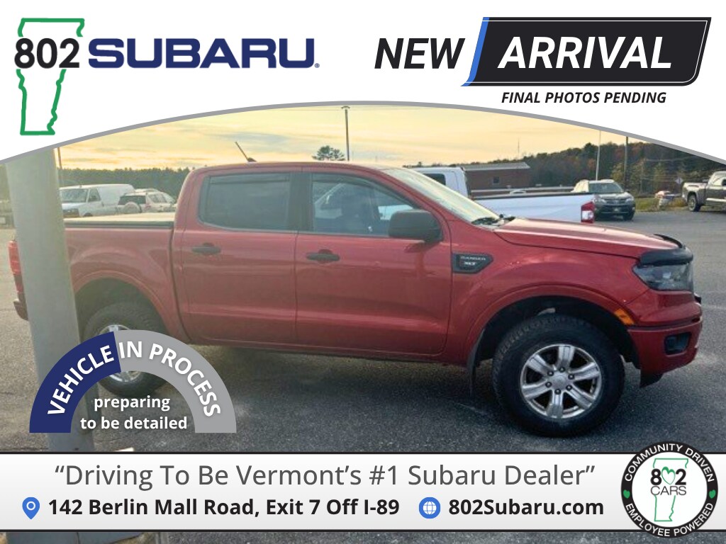 802 Subaru is proud to present you with another True Market Priced Pre-Owned Vehicle. Transparent Pricing Of $ 24900 !! This 2019 Ford Ranger XLT is loaded with the following Factory Options: Ranger XLT, 4D Crew Cab, 10-Speed Automatic, and 4WD Ranger XLT, 4D Crew Cab, 10-Speed Automatic, 4WD, 4-Wheel Disc Brakes, 6 Speakers, ABS brakes, Air Conditioning, Brake assist, Compass, Delay-off headlights, Driver door bin, Dual front impact airbags, Dual front side impact airbags, Electronic Stability Control, Exterior Parking Camera Rear, Front anti-roll bar, Front Bucket Seats, Front Center Armrest, Front wheel independent suspension, Fully automatic headlights, Illuminated entry, Low tire pressure warning, Occupant sensing airbag, Overhead airbag, Passenger door bin, Power steering, Power windows, Radio: AM/FM Stereo w/6 Speakers, Rear seat center armrest, Rear step bumper, Speed-sensing steering, Steering wheel mounted audio controls, TBD Axle Ratio, Telescoping steering wheel, Tilt steering wheel, Traction control, Trip computer, Variably intermittent wipers, and Voltmeter!!